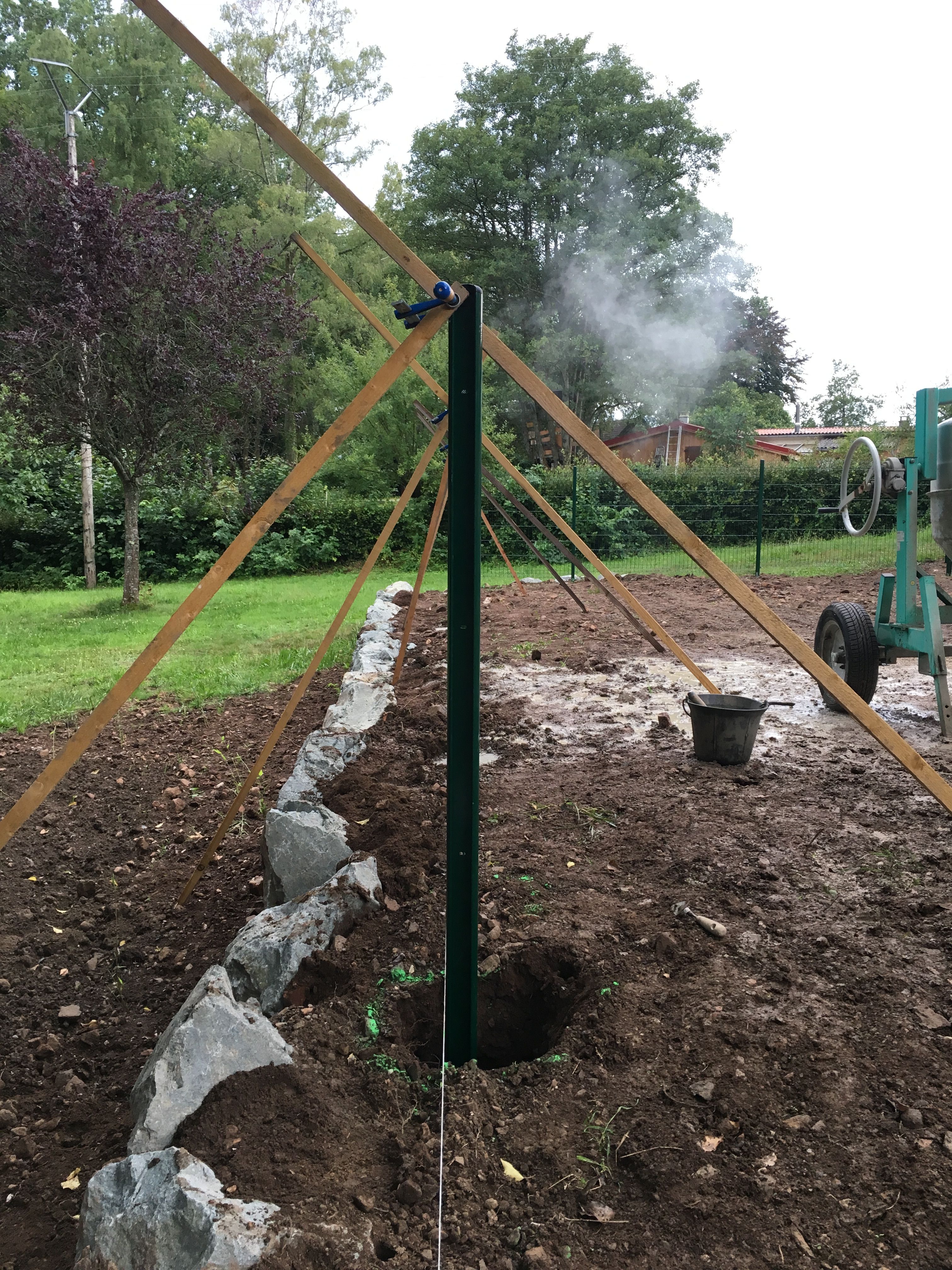 Pour réaliser ces travaux dans les meilleures conditions, différents équipements sont utilisés : tarière thermique ou mécanique pour les trous de poteaux, niveau laser ou niveau à bulle pour l’alignement, bétonnière, outils de fixation et matériel de coupe. Cette précision de mise en œuvre garantit une clôture parfaitement droite, solide et durable.