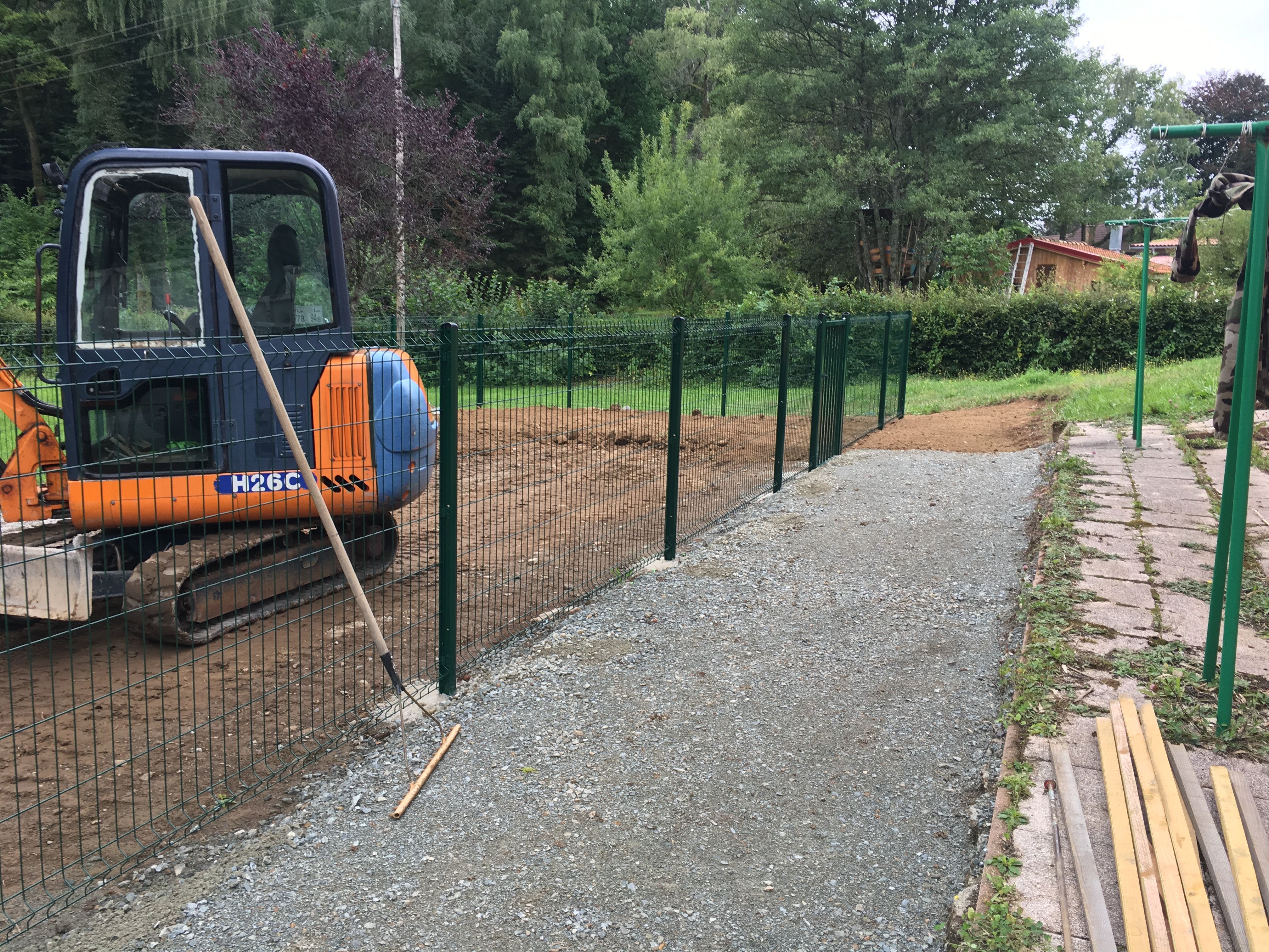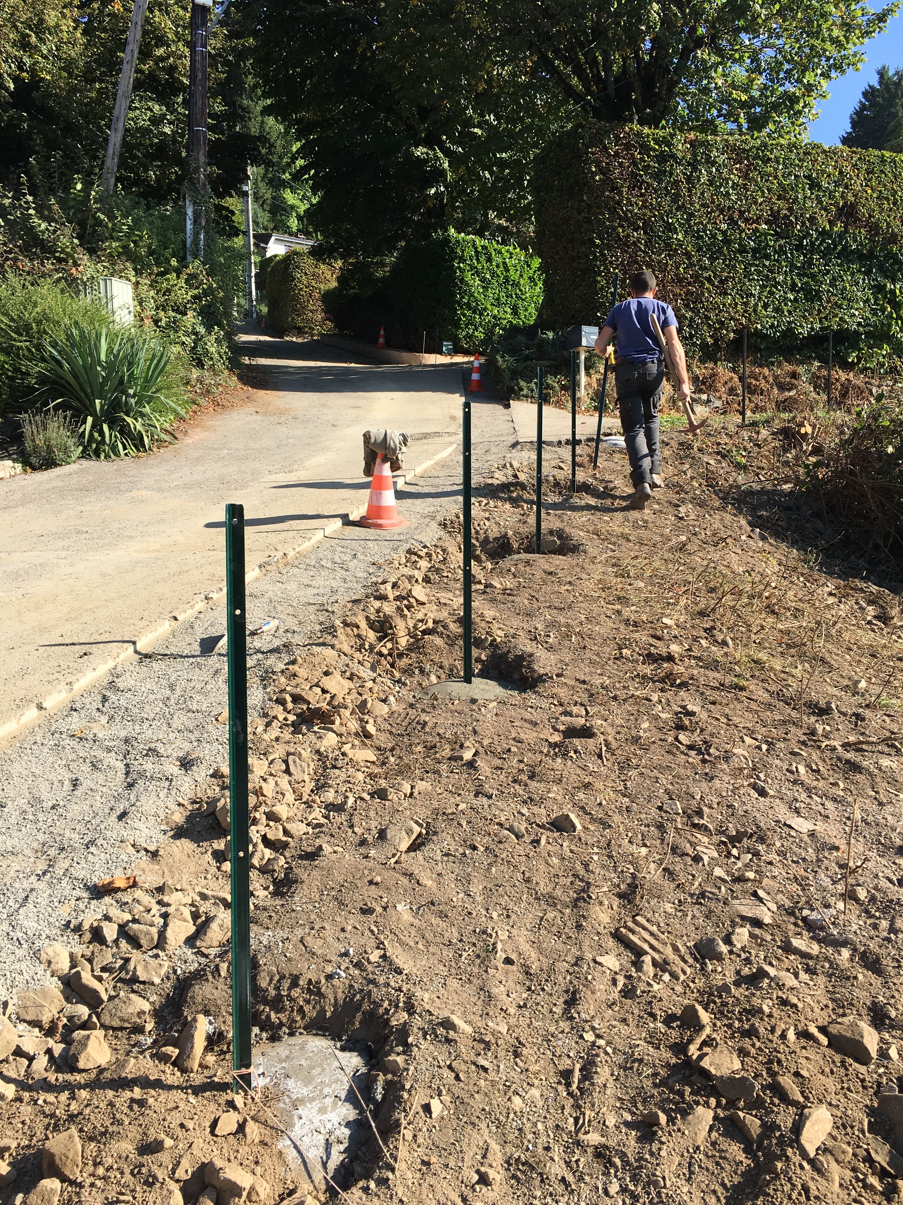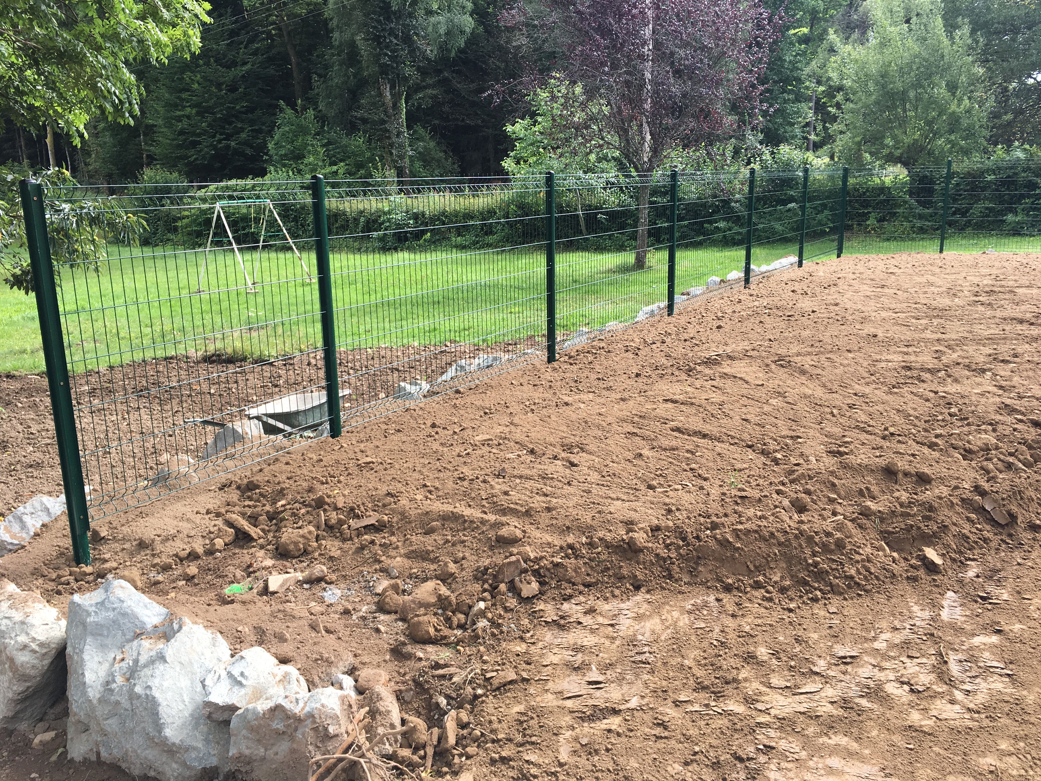 La mise en place d’une clôture nécessite une préparation précise du terrain afin de garantir la solidité et la durabilité de l’installation. Les travaux comprennent généralement le traçage des limites, la réalisation des trous pour les poteaux, la mise en place des supports et la fixation des panneaux ou du grillage. Les poteaux peuvent être scellés dans le béton afin d’assurer une excellente résistance dans le temps.